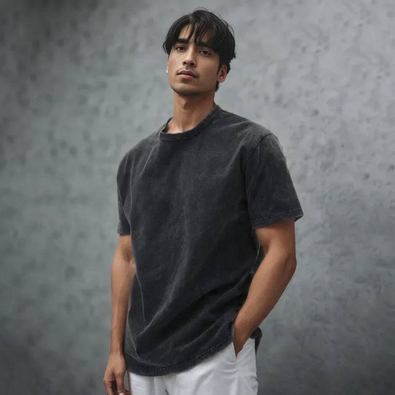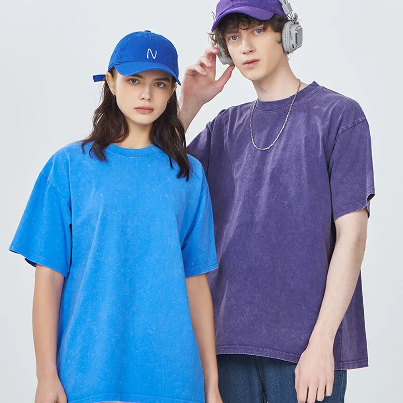 Customized LOGO Heavyweight Washed Distressed T-shirts Unisex Vintage Cotton Batik Men T-shirts Streetwear Min Order Quantity 1
