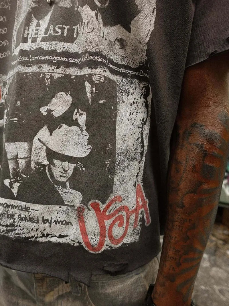 Make your mark with distressed detail — grab this ripped graphic tee and own your alternative street style today!